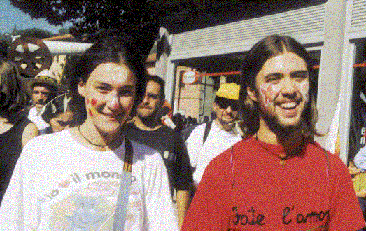 Hanno marciato gli scout, i Sindaci con i gonfaloni dei Comuni, i sindacati, i partiti, gli studenti, lavoratori, le associazioni, le suore, i meno giovani con la maglia del Che ed i giovani con quella di gatto Silvestro, le donne incinta e i ragazzi in carrozzella, c’era uno che portava un quadro ad olio del Cristo, tantissimi colori, bandiere (un paio di bandiere USA insieme a quelle dell'Islam) e striscioni a non finire,……..e tanti, tantissimi giovani che hanno voluto esserci per dire PACE a modo loro cantando “Imagine” di John Lennon, Bella Ciao e le canzoni di Battisti, De Gregori e Guccini.